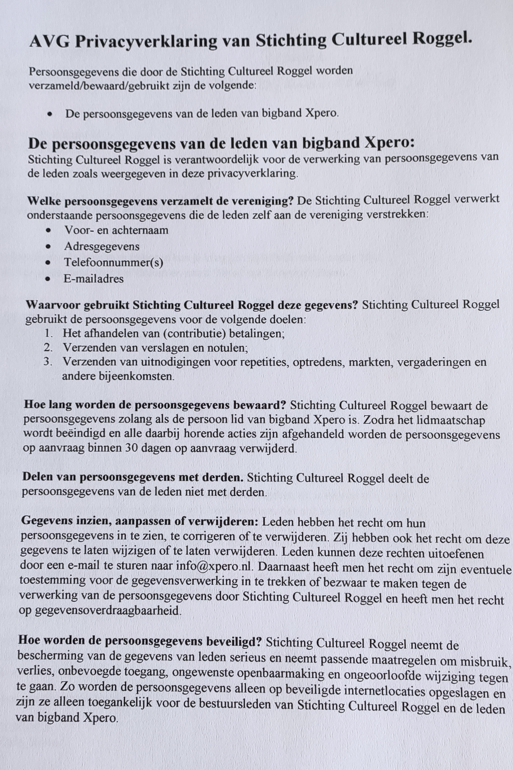 AVG privacyverklaring van Stichting Cultureel Roggel.